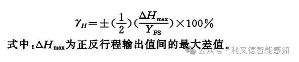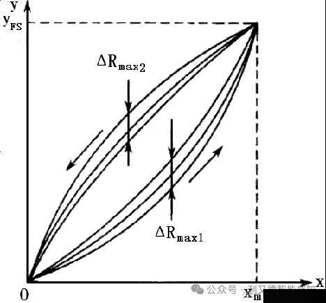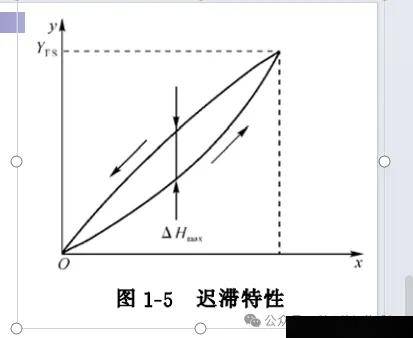 迟滞是指传感器在正反行程中输出与输入曲线不重合的现象,如图1-5所示。其数值用最大偏差或最大偏差的一半与满量程输出值的百分比表示: