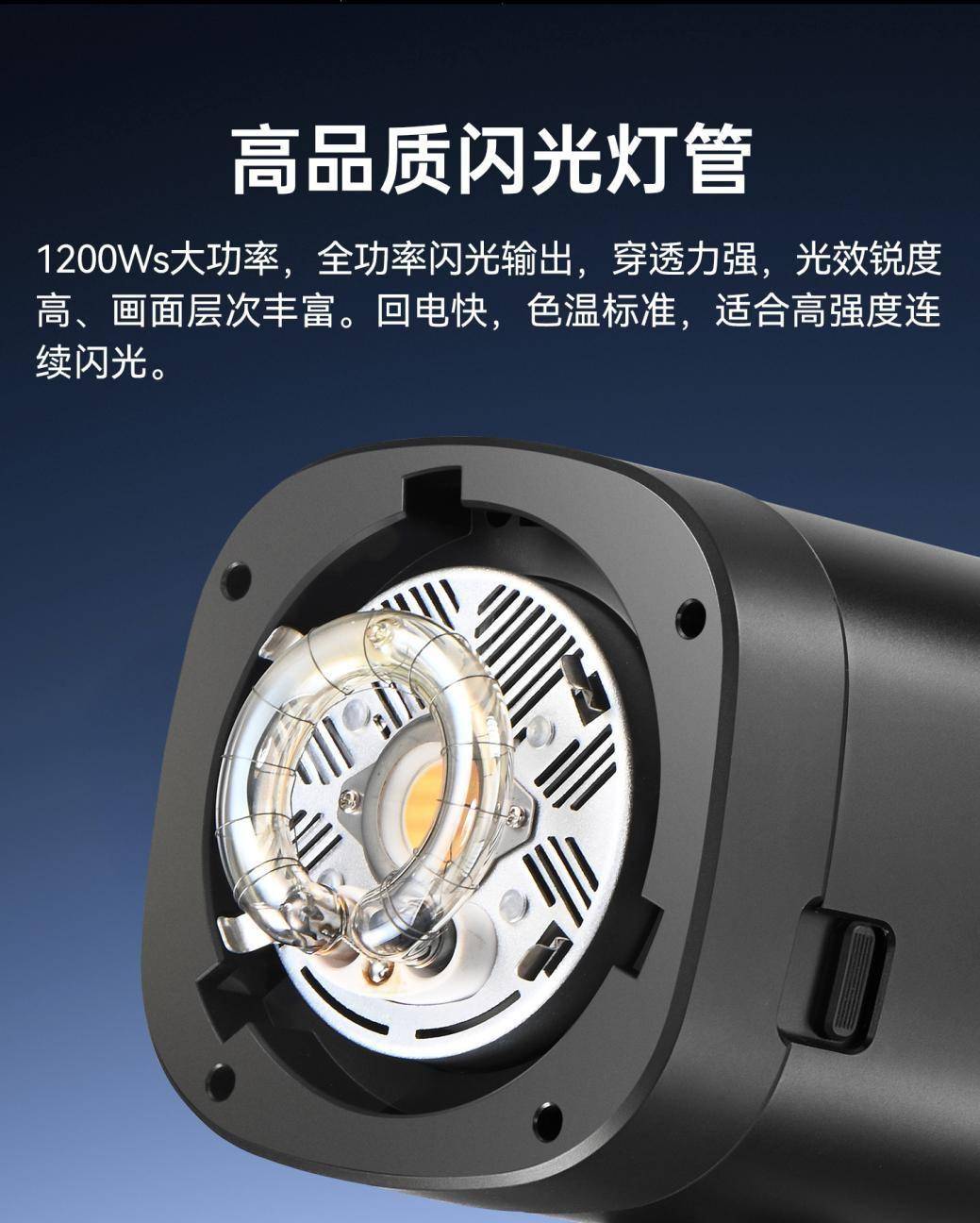 得益于瓷套针脚和优异设计,相较于传统灯管,Ω型灯管在连续闪光时的热量散发更为迅速,有效降低了灯管因高温而产生的光衰现象,延长了灯管的使用寿命,确保在长时间高强度的拍摄工作中,灯光始终保持稳定的输出功率和一致的光线品质,为每一次闪光提供可靠的光影支持。