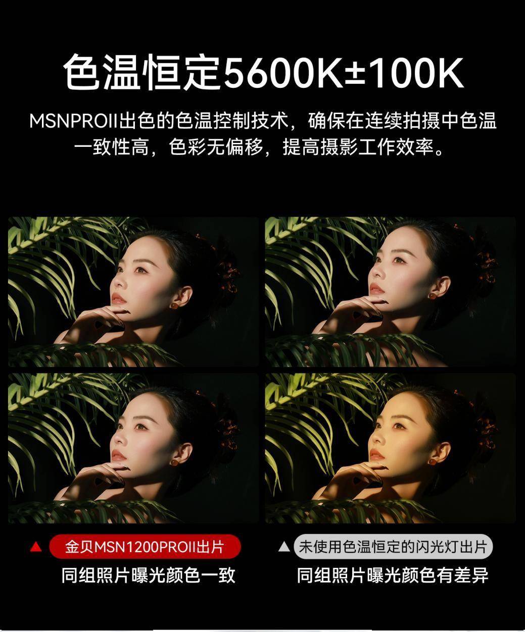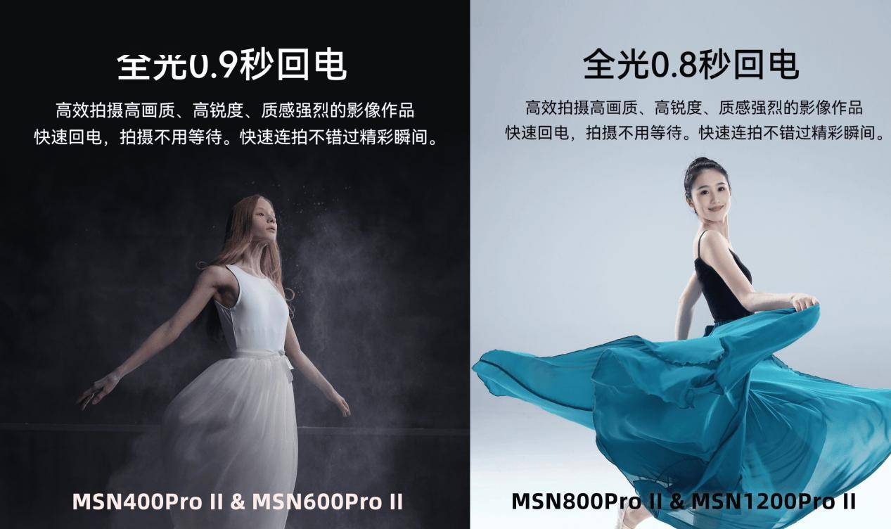 金贝MSN PRO II系列高速影室闪光灯集大功率输出、极速回电、精准控色、耐用稳定等优势于一身,直击专业拍摄中对效率的要求与灯光品质的痛点。无论是追求高效出片的商业拍摄,还是探索创意光影的艺术创作,该系列闪光灯都能提供坚实的光影支持以及不同的功率选择,助力创作者捕捉每一个精彩瞬间,解锁更多摄影可能。