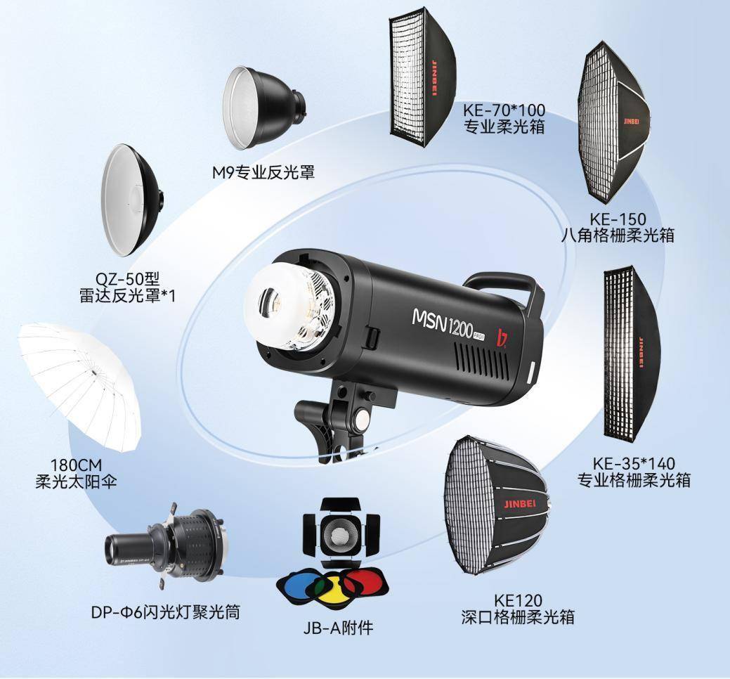 MSN PRO II系列闪光灯的卡口兼容金贝标准卡口与保荣卡口附件,可搭配柔光箱、聚光筒等多种控光配件,一灯多用实现柔和补光、局部聚光和光影塑形等多种效果。不论是专业摄影师创作的升级需求,还是各类工作室对于高效生产的追求,MSN PRO II系列闪光灯都能凭借稳定可靠的性能与精准专业的光效,成为创意表达的得力助手。