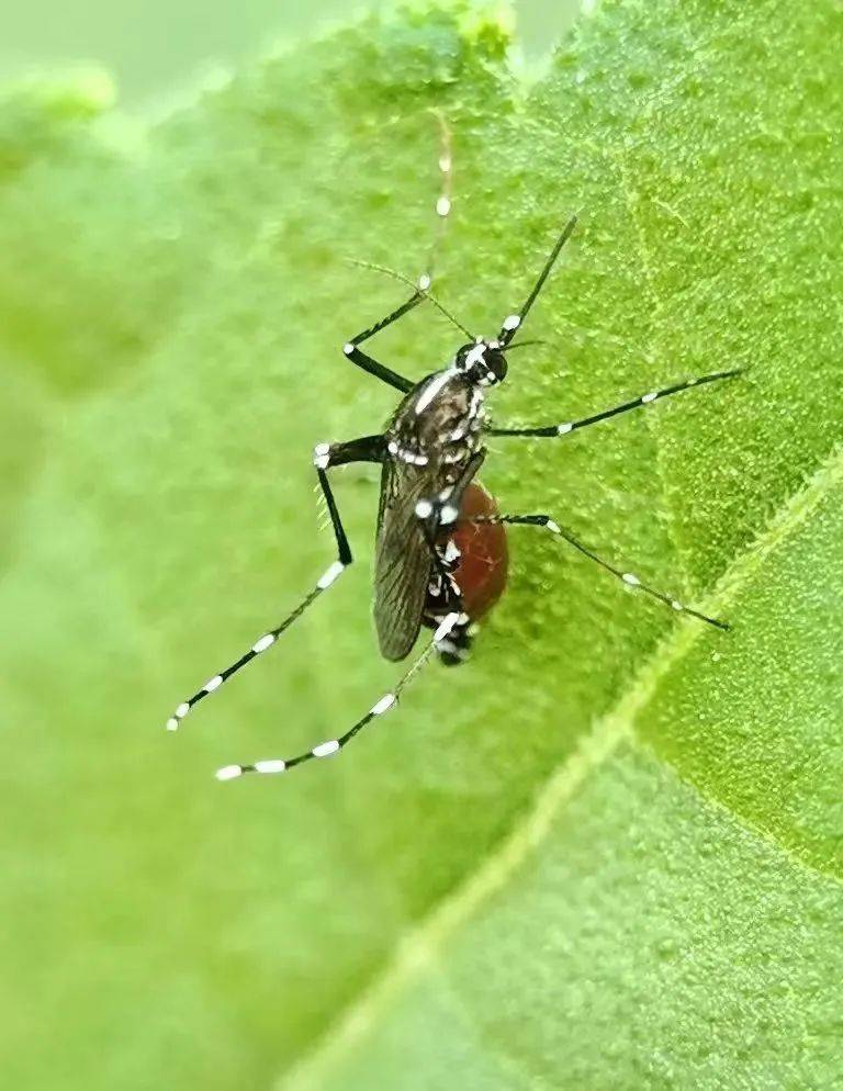 图为白纹伊蚊,俗称“花蚊子”。(受访者供图)