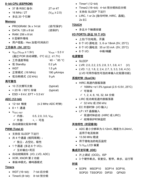 低电压检测LVD: 1.2V/2.0V2.4V/2.7V/3.0V/3.3V/3.6/4.0V或者外部输入电压