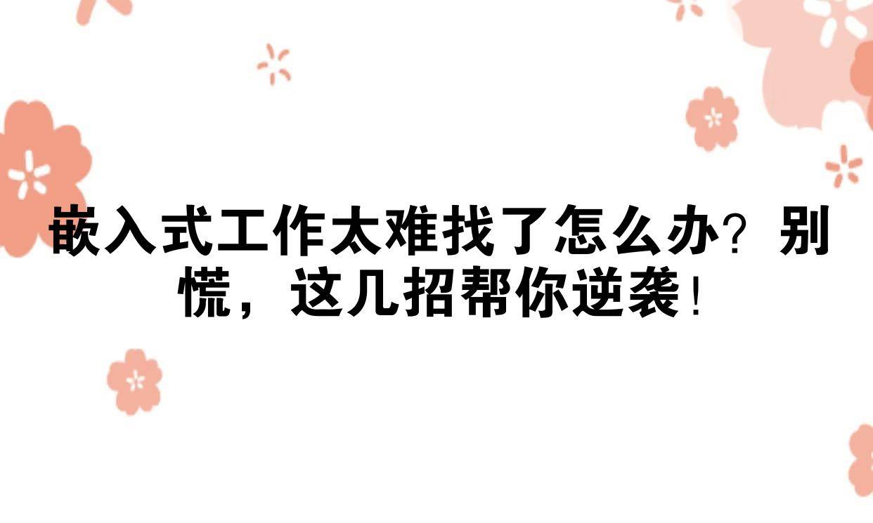 最近好多朋友跟我吐槽,嵌入式工作咋这么难找啊?投了几十份简历,面试都少得可怜。你是不是也这样?别急,这行竞争确实激烈,但咱一步步来,总有办法破局。嵌入式这玩意儿,既要懂硬件又要会软件,门槛高,企业还老要求经验,新手容易卡壳。但别灰心,我分享点实用建议,帮你少走弯路。