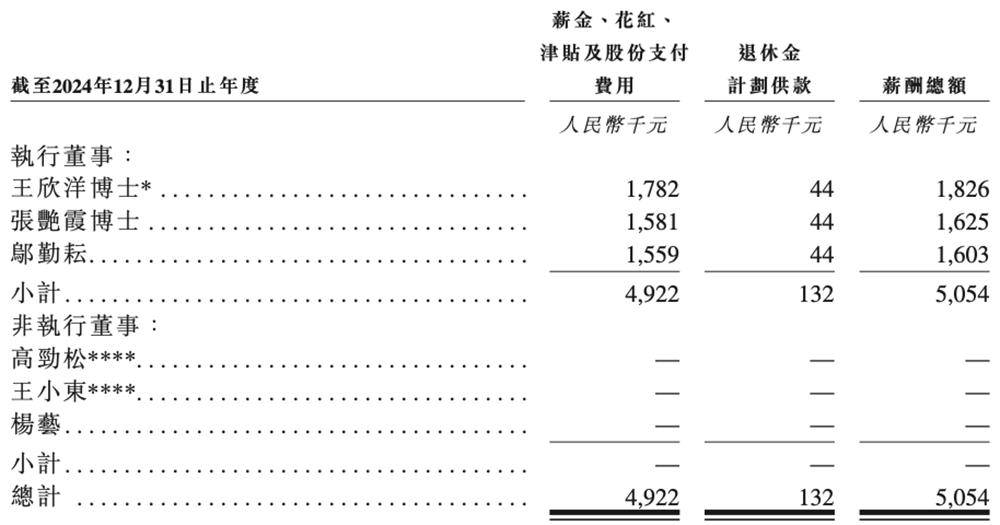 2024年,长光辰芯的执行董事、非执行董事及最高行政人员薪酬如下: