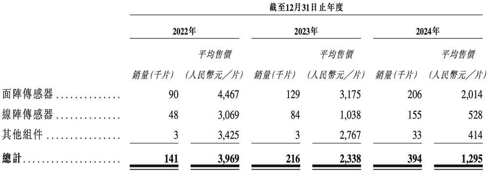 这些组件的平均售价均逐年下跌,其中面阵传感器平均售价较高,为千元级。2024年,长光辰芯传感器销量达36万片。