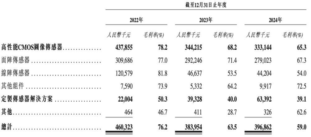 2022年、2023年及2024年,长光辰芯的毛利率分别为76.2%、63.5%、59.0%。