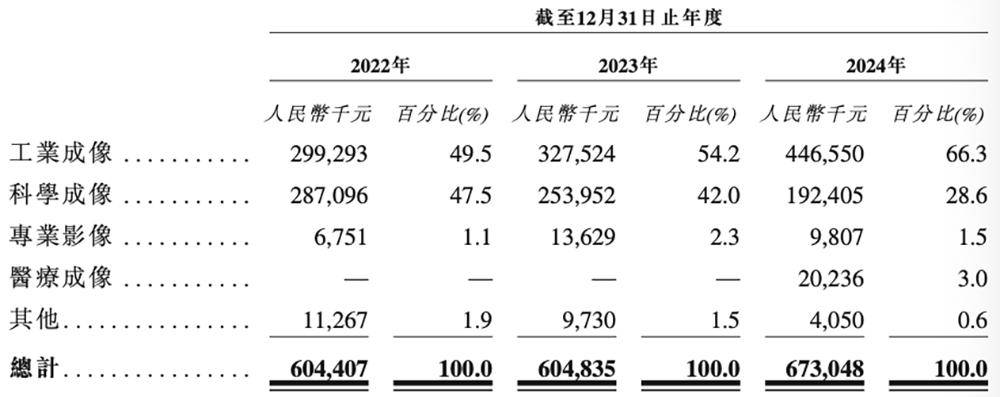 按主要应用场景划分,2024年其66.3%的收入来自工业成像场景,28.6%的收入来自科学成像场景。