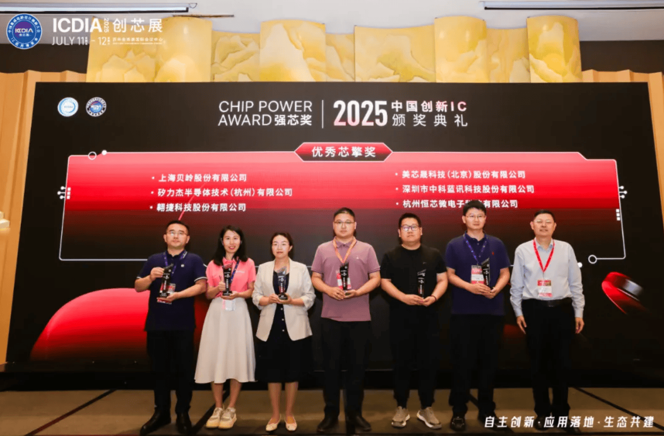 在7月11日的欢迎晚宴现场,由中国集成电路设计创新联盟组织开展的“2025中国创新IC-强芯评选”颁奖典礼隆重举行,现场公布了“2025中国创新IC-强芯评选”的获奖企业,本次评选活动设潜力新秀奖、创新应用奖、优秀芯擎奖、强芯领航奖、生态贡献奖五大奖项。