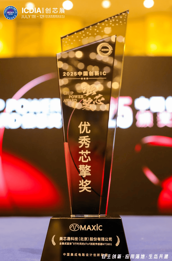 7月11日-12日,由中国集成电路设计创新联盟、国家“芯火”双创基地(平台)联合主办的第五届中国集成电路设计创新大会暨IC应用生态展(ICDIA2025)在苏州金鸡湖国际会议中心举行,美芯晟全集成直接飞行时间DTOF传感器荣获2025中国创新IC-优秀芯擎奖。