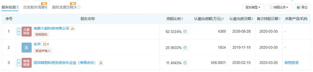 今年3月26日,华为哈勃首次入股芯曌科技,目前,华为哈勃对芯曌科技的认缴出资额为806.88万元,持股比例为11.4943%,为第三大股东。
