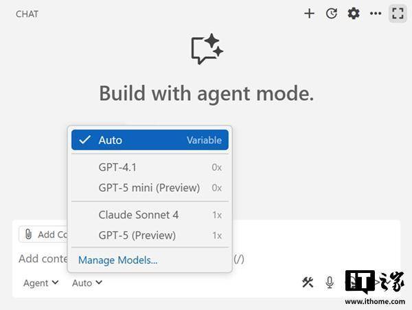 IT之家 9 月 16 日消息,微软正为其 Visual Studio Code(简称 VS Code)编辑器新增 AI 模型自动选择功能,该功能将自动挑选最佳模型以实现“最佳性能”。这一新的自动模型选择功能将为 GitHub Copilot 免费用户在 Claude Sonnet 4、GPT-5、GPT-5 mini 及其他模型中进行选择;而付费用户则“主要依赖 Claude Sonnet 4”。