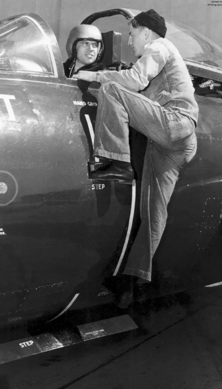 除非一些不便使用登机梯的场景,比如说舰载机,航母甲板面积有限,对战斗机的起降强度和运营效率要求非常高,在拥挤的甲板上让地勤拿着梯子跑来跑去十分麻烦,还容易造成事故,所以才会沿用那种机身上直接加登机脚踏的做法,比如FJ-1“愤怒”,F2H“女妖”。