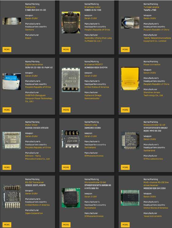除了上述零部件,俄军最新的沙赫德-238喷气式动力的自杀式无人机中,内部有许多外国制造的零部件:45个主要零部件中,一半来自美国,8个来自中国制造,7个来自瑞士,3个来自德国,2个来自英国,1个来自日本。除此之外,这架俄军无人机,还配备了中国企业生产的网状调制解调器,主要是构建网络,扩大通信范围,增强自身抗干扰能力。俄罗斯无人机还配备了中国企业生产的侦察相机,实现察打一体,实时回传图像。