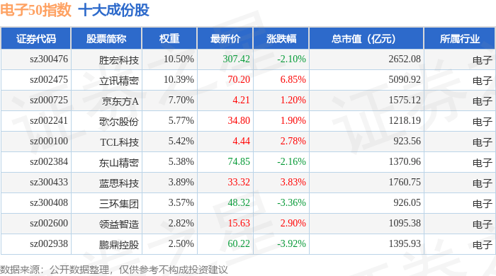 证券之星消息,9月24日,电子50(399281)指数报收于4893.61点,涨2.09%,成交1476.49亿元,换手率4.48%。当日该指数成份股中,上涨的有39家,江丰电子以20.0%的涨幅领涨,下跌的有10家,鹏鼎控股以3.92%的跌幅领跌。