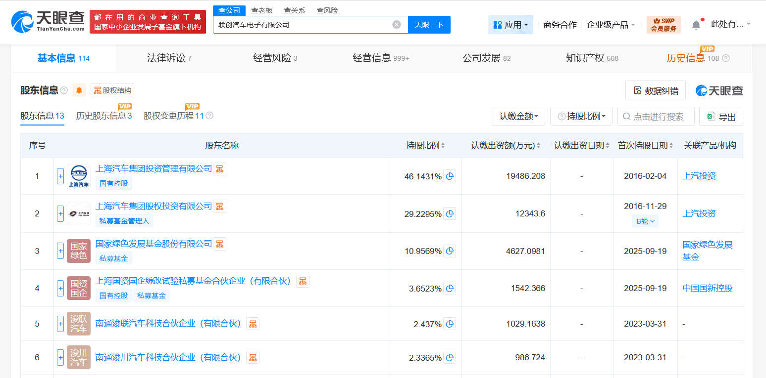 联创汽车电子有限公司成立于2006年4月,法定代表人为芦勇,经营范围含汽车电子系统及相关零部件、汽车智能网联系统、汽车线控底盘系统及相关电子零部件、新能源汽车零部件、清洁能源汽车零部件的研发、生产、销售等。股东信息显示,该公司现由上海汽车集团投资管理有限公司、上海汽车集团股权投资有限公司、南通浚联汽车科技合伙企业(有限合伙)及上述新增股东等共同持股。