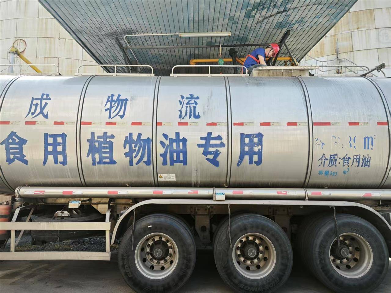国家标准《食用植物油散装运输卫生要求》(GB 44917-2024)2025年2月开始实施。在中昌公司原料接收现场,AI“电子眼”实时记录罐车入场登记、过磅、随行材料前一载证明检查、铅封检查等全流程操作。一名企业品控人员在罐车顶部取样口对罐内原料油进行取样,“我们会对每一辆油罐车都进行取样检验,检验合格才能卸油。”监管人员同步查阅企业原辅料进货台账、相关票据及前一载证明等材料,督促企业做好资料留存便于追溯,而AI“电子眼”的记录则为追溯提供了可视化依据。