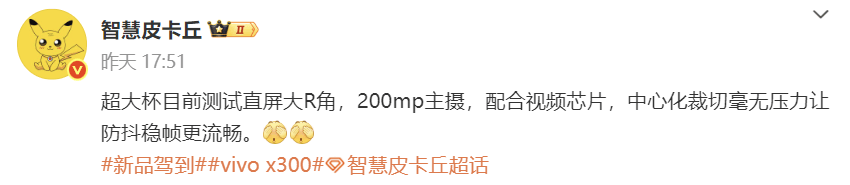 近期有爆料显示,vivo X300 Ultra作为vivo旗下的下一代影像旗舰,正试图从 “直屏大R角设计” 和 “专业视频芯片” 两方面发力。