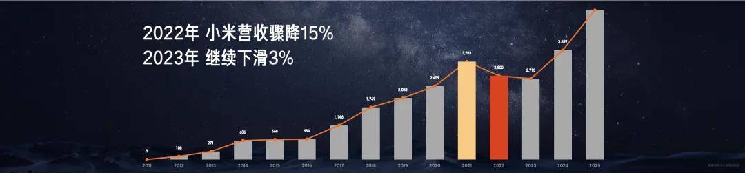 2021 年初,小米新一轮的芯片之旅,重新开始了。费尽了周折,小米才终于重新组建了团队。项目进入第二年,小米遇到了更大的困难。当时,小米业务受国际经济形势和地缘政治的影响,业务出现大幅滑坡,营收骤降 15%,这是小米史上第一次。