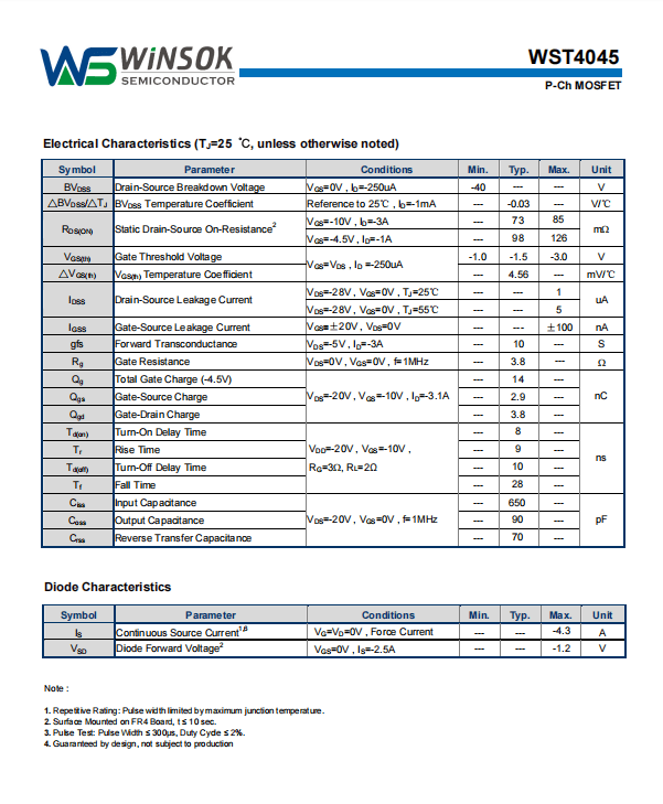 1、零静态功耗电源管理作为电池正端高边开关,WST4045关断漏电流仅1μA,搭配ECU休眠策略,整车静态功耗<0.6mA,延长驻车电池待机30天