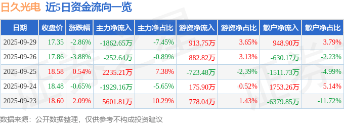 9月29日的资金流向数据方面,主力资金净流出1862.65万元,占总成交额7.45%,游资资金净流入913.75万元,占总成交额3.65%,散户资金净流入948.9万元,占总成交额3.79%。