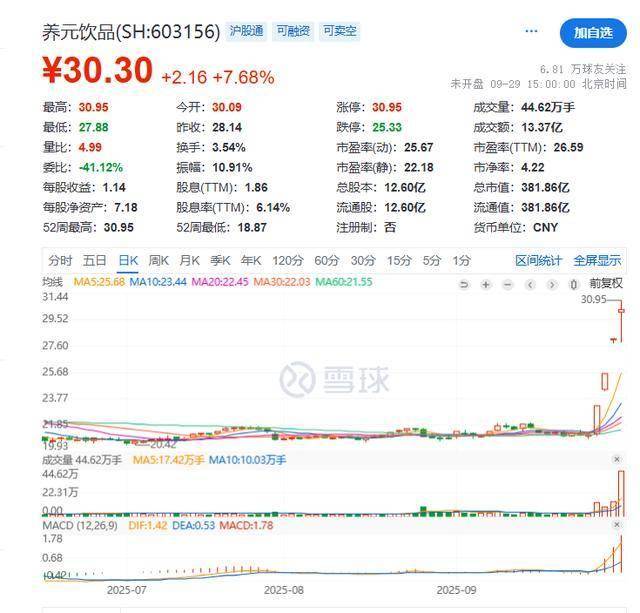 截至2025年9月29日,该公司股价已斩获四连板,总市值达381.86亿元。