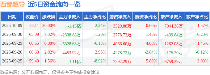 10月9日的资金流向数据方面,主力资金净流出1.13亿元,占总成交额2.24%,游资资金净流入3329.88万元,占总成交额0.66%,散户资金净流入7944.36万元,占总成交额1.57%。