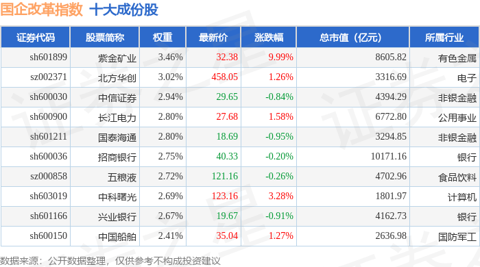 证券之星消息,10月9日,国企改革(399974)指数报收于1955.81点,涨2.4%,成交2771.55亿元,换手率1.33%。当日该指数成份股中,上涨的有75家,西部超导以20.0%的涨幅领涨,下跌的有24家,芒果超媒以6.68%的跌幅领跌。