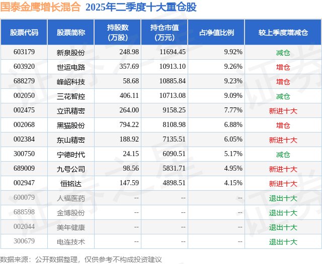 重仓世运电路的前十大公募基金请见下表: