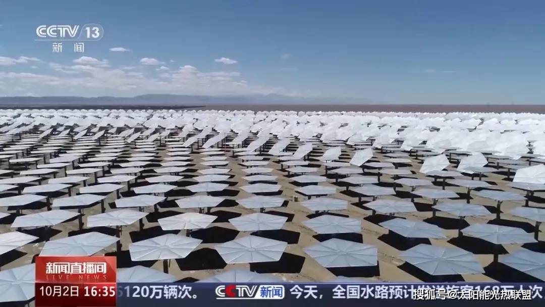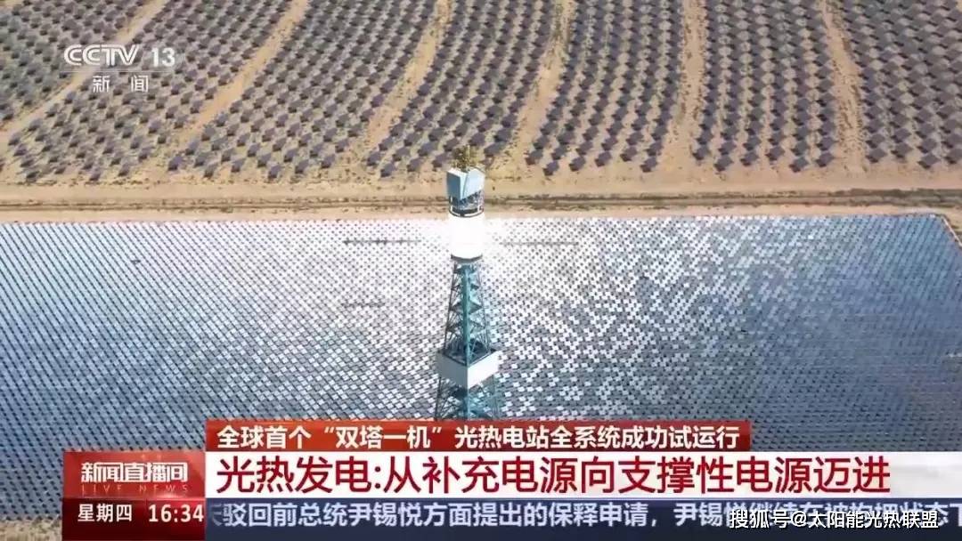 10月2日,位于甘肃酒泉瓜州的全球首个“双塔一机”光热储能电站,两座吸热塔实现同时点亮,成功进入全系统试运行,标志着塔式光热发电技术突破了“单塔单机”的传统范式。央视新闻频道《新闻联播》《朝闻天下》《新闻直播间》不同时段对瓜州光热储能电站进行直播报道,同时太阳能光热联盟理事单位——电力规划总院发电工程咨询院院长胡文平出镜表示,光热发电在“十四五”期间展现了作为新型电力系统支撑性电源的潜力。