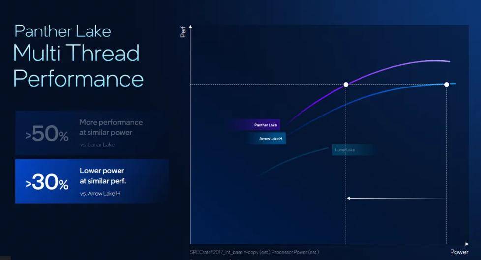 18A工艺代表着英特尔在技术上的重大突破。它首次应用了全环绕栅极晶体管和背面供电网络两大创新技术。与Intel 3工艺相比,18A能够提供15%的频率提升,晶体管密度提高1.3倍,或者在同等性能水平下降低25%的功耗。更令人瞩目的是,新一代芯片与被称为"英特尔CPU能效巅峰之作"的Lunar Lake相比,相同功耗下性能提升50%;而与上一代Arrow Lake-H处理器相比,性能相同时功耗降低30%。这些数据表明,英特尔在能效比方面正在迎头赶上。