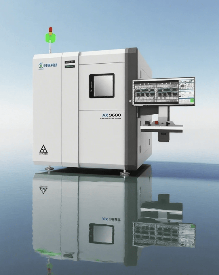 以日联开管X-RAY半导体智检装备AX9600为例,其颠覆了传统装备在第三代半导体缺陷识别精度与失效分析瓶颈,保证了0.8μm级缺陷全捕捉、纳米级成像及零缺陷质控全流程闭环;采用日联自研160kV开放式微聚焦X射线源,超大几何放大倍率,高清晰实时成像,完成半导体产品爬锡高度、连锡、虚焊、漏焊、短路等封装缺陷和空洞、裂纹等内部结构缺陷检测;强穿透能力搭配高放大倍率,可轻松完成3D/系统级封装、IC压焊等工艺中多种类缺陷检测,以及捕捉TGV(Through Glass Via)和TSV(Through Silicon Via)工艺中微小对象的纤细细节。