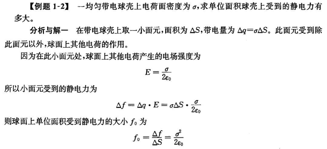 如果问题改为“单位面积球壳受到的静电力”,这时候就不能从开始积分了。如果不能积分,我们可以考虑一下程书的解法: