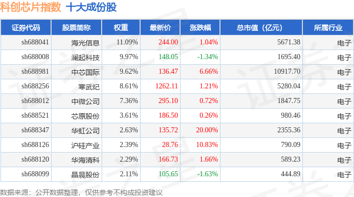 科创芯片(000685)指数十大成份股详情如下: