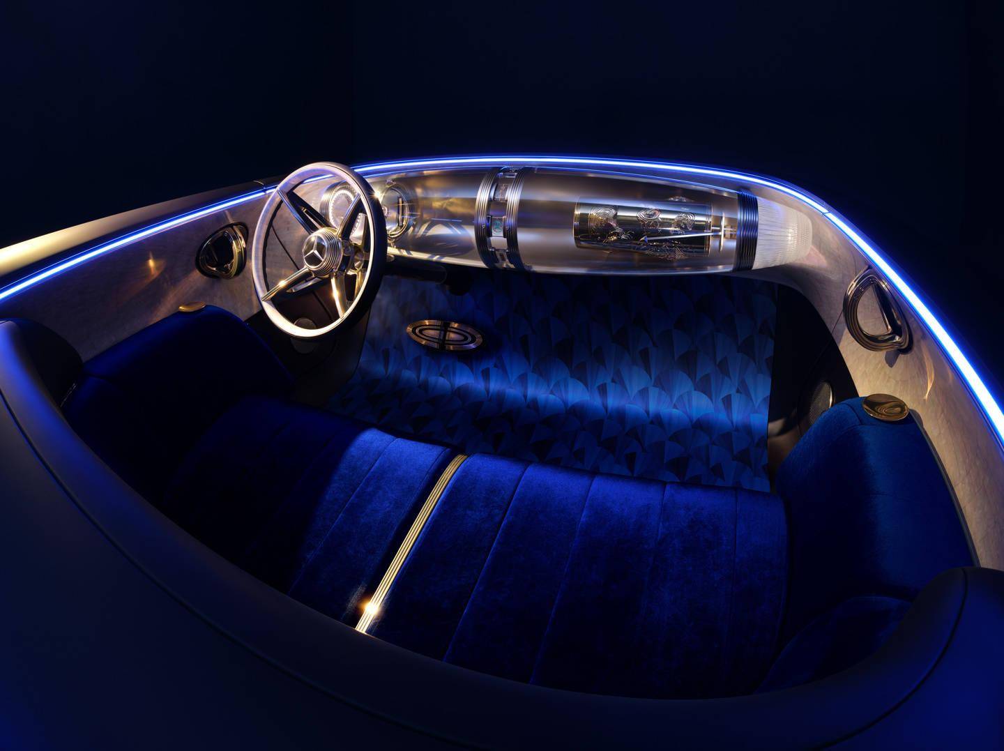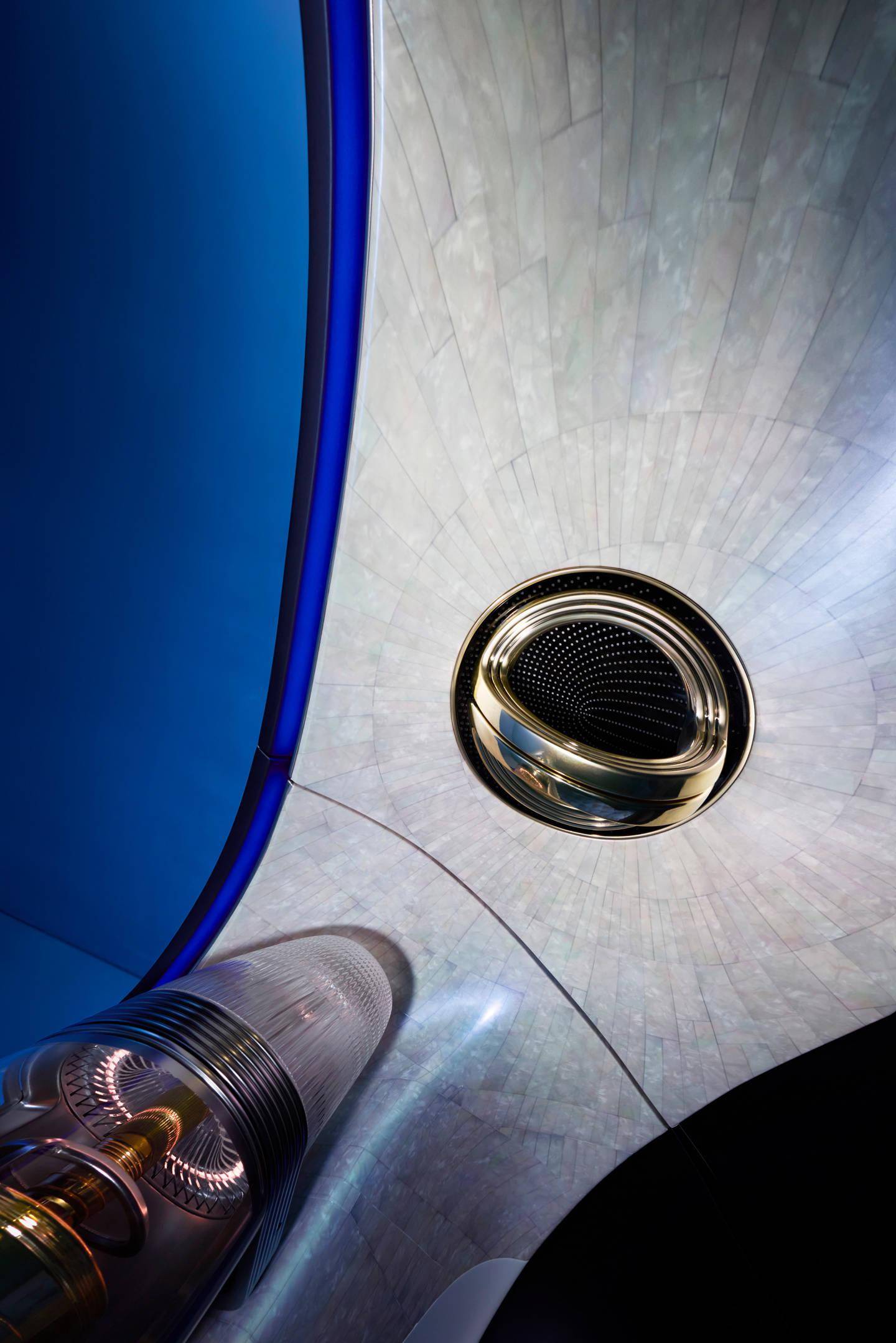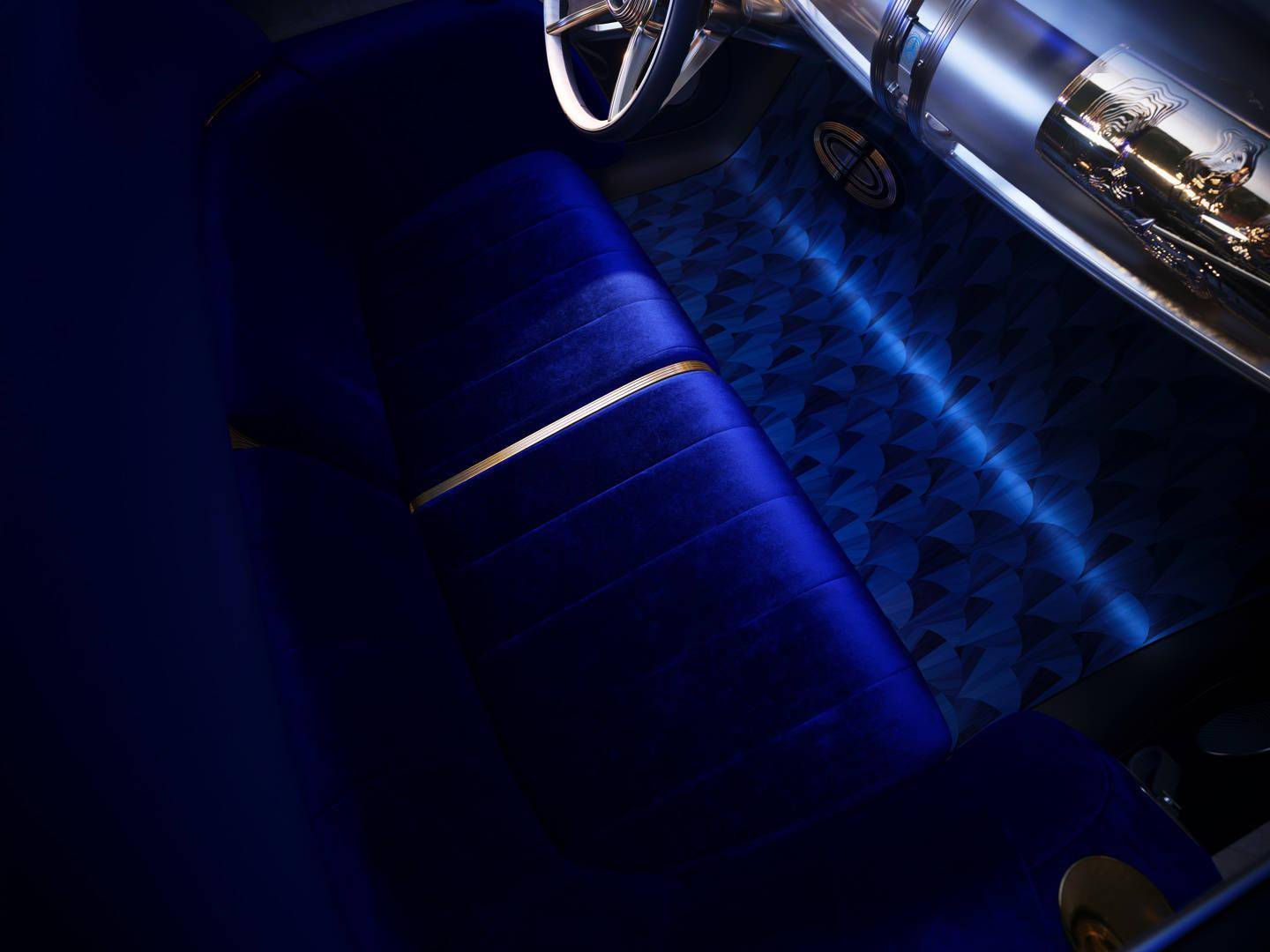 其内饰以华丽的装饰艺术(Art Deco)美学风格为基调,展现精湛工艺与专属材质,仪表台中央的“齐柏林(Zeppelin)”悬浮式玻璃结构,让科技和复古有机结合。