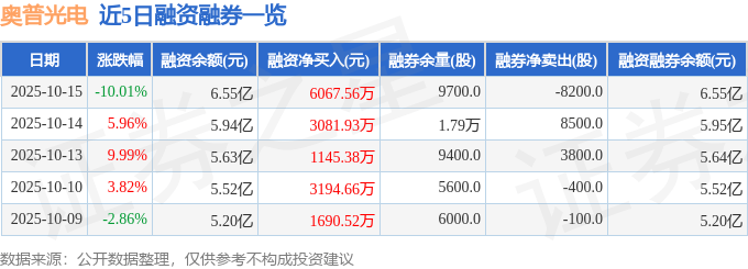 证券之星消息,截至2025年10月15日收盘,奥普光电(002338)报收于60.98元,下跌10.01%,跌停,换手率10.46%,成交量25.11万手,成交额15.44亿元。