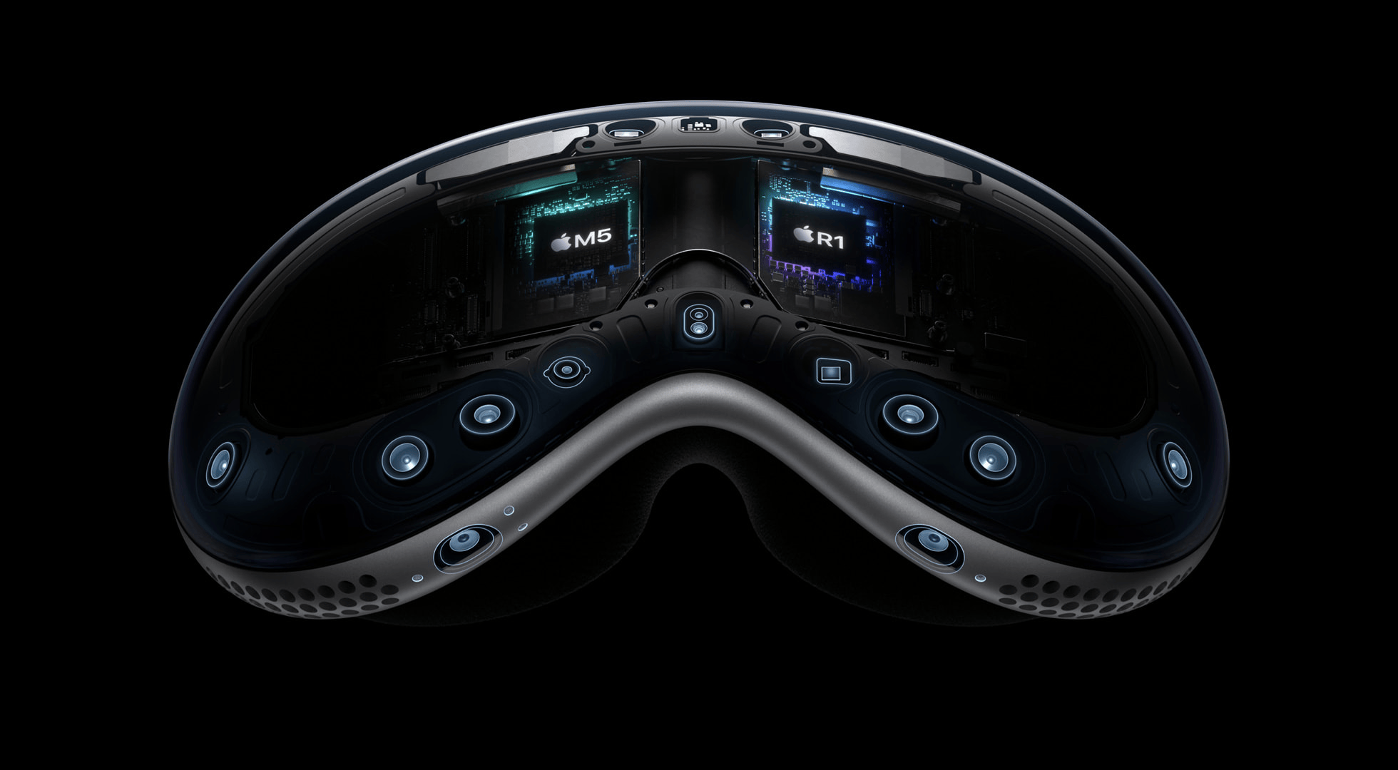 在 M5 的驱动下,Apple Vision Pro 的定制 Micro-OLED 显示屏渲染的像素比上一代增加了 10%,带来了更锐利的图像、更清晰的文本和更精细的视觉效果。刷新率最高可提升至 120Hz,减少了运动模糊。Vision Pro 上的 M5 芯片与专门打造的 R1 芯片协同工作,后者负责处理来自 12 个摄像头、5 个传感器和 6 个麦克风的输入,并在 12 毫秒内将新图像串流至显示屏,创造出实时的世界视图。