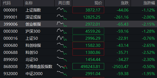 A股:截至发稿,沪指跌1.12%,深成指跌2.00%,创业板指跌2.15%。