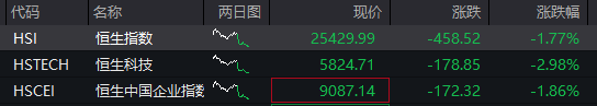 港股:截至发稿,恒指跌1.77%,恒科指跌2.98%。