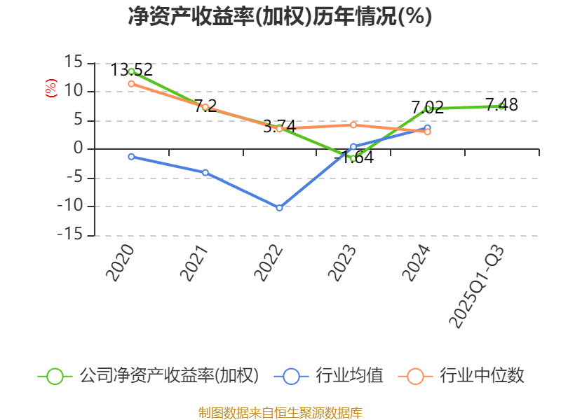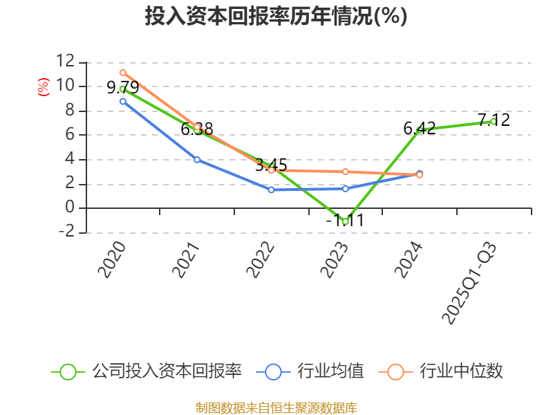 盈利能力方面, 2025年前三季度公司加权平均净资产收益率为7.48%,同比上升1.63个百分点。公司2025年前三季度投入资本回报率为7.12%,较上年同期上升1.76个百分点。