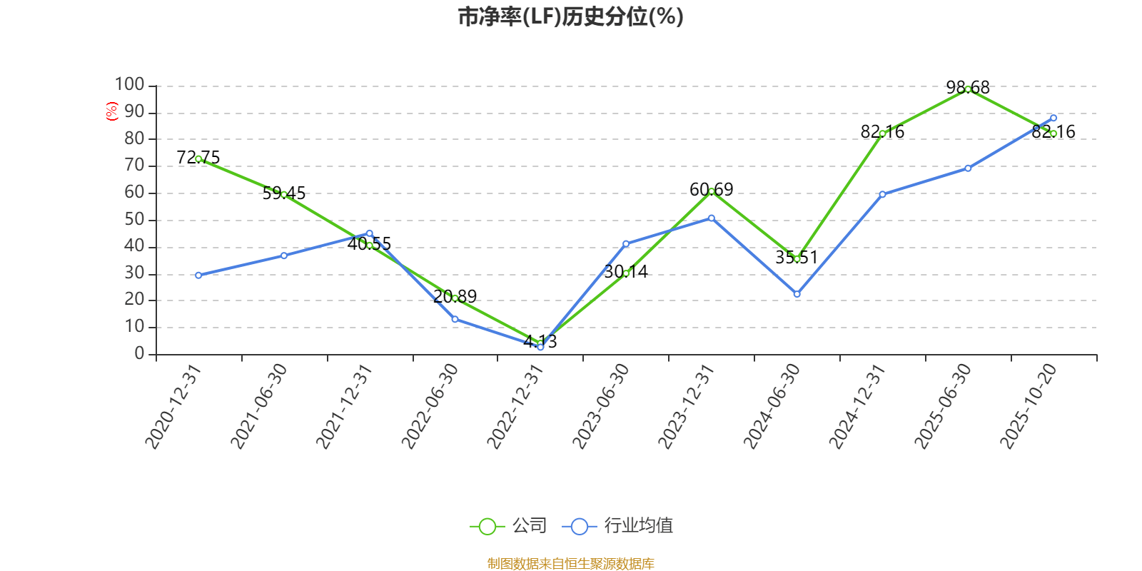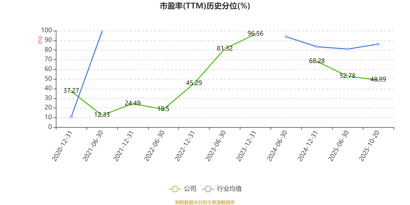 市盈率、市净率为负时,不显示当期分位数,会导致折线图中断。