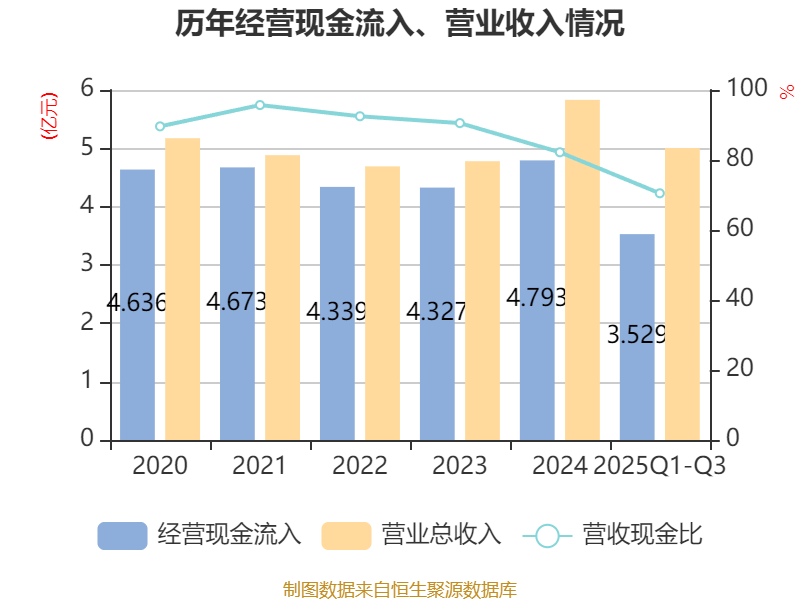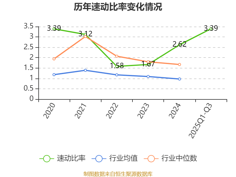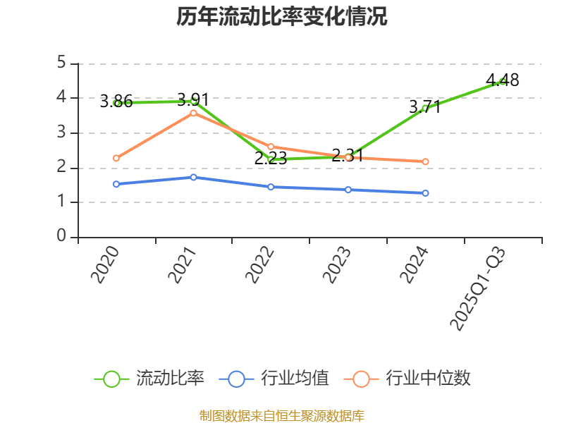 2025年前三季度,公司流动比率为4.48,速动比率为3.39。
