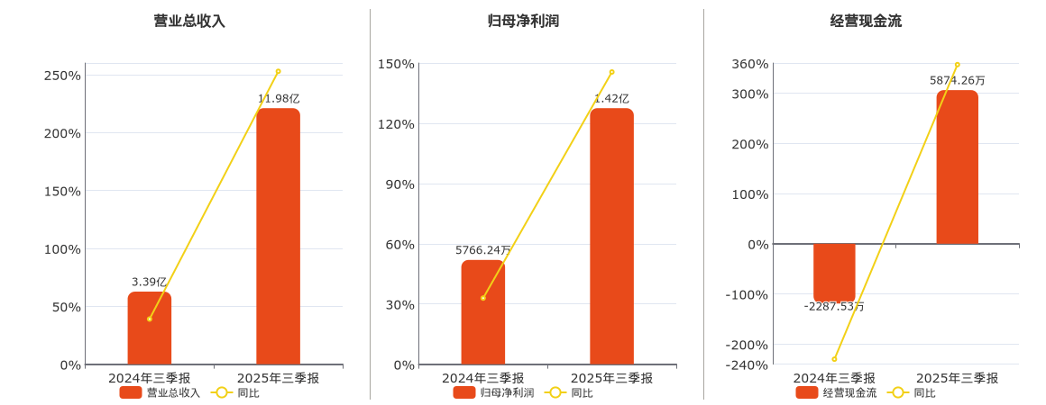 公司营业总收入为11.98亿元。归母净利润为1.42亿元。经营活动现金净流入为5874.26万元。