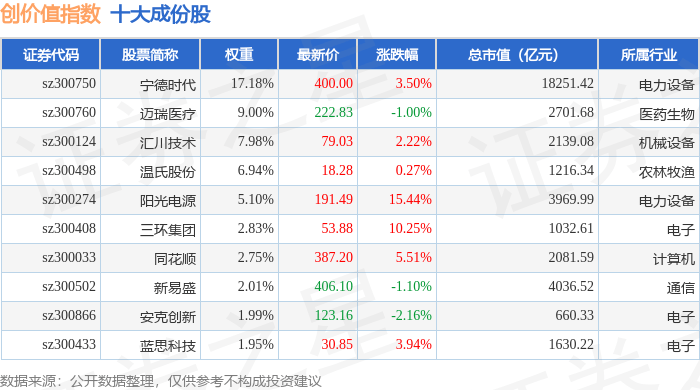证券之星消息,10月29日,创价值(399295)指数报收于5707.17点,涨2.76%,成交1418.7亿元,换手率2.79%。当日该指数成份股中,上涨的有37家,阳光电源以15.44%的涨幅领涨,下跌的有13家,长盈精密以2.55%的跌幅领跌。