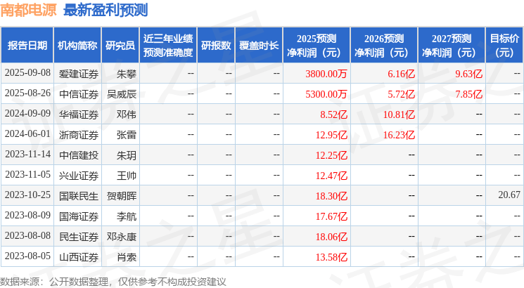 以下是详细的盈利预测信息:
