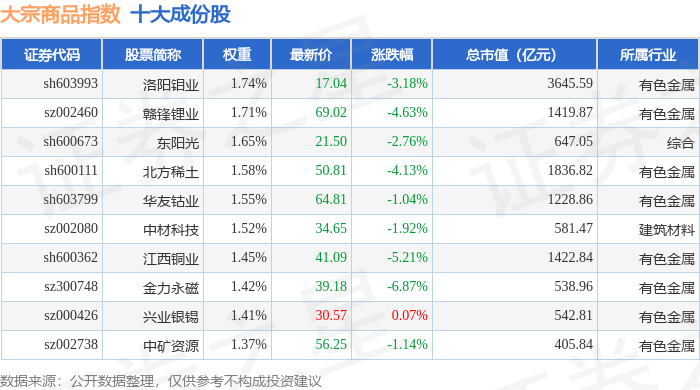 资金流向方面,大宗商品(000979)指数成份股当日主力资金净流出合计72.73亿元,游资资金净流入合计19.83亿元,散户资金净流入合计52.9亿元。成份股资金流向详情见下表: