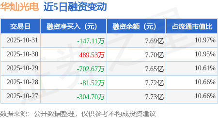 证券之星消息,10月31日,华灿光电(300323)融资买入855.36万元,融资偿还1002.47万元,融资净卖出147.11万元,融资余额7.69亿元,近20个交易日中有13个交易日出现融资净买入。