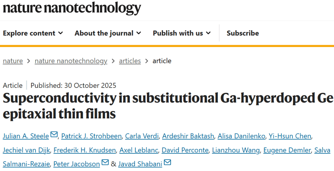 在锗中实现超导,将能为基于当前半导体工艺来开发可扩展型量子器件开辟新道路。同时,这一成果提升了人们对于 IV 族半导体物理性质的理解,也挖掘出了将它们用于低功耗低温电子设备和高灵敏度传感器的可能。这一成果标志着超导体制造工艺从小批量的层状超导体向着在半导体衬底上进行可扩展的晶圆级集成迈出了重要一步,相关论文发表于 Nature Nanotechnology。