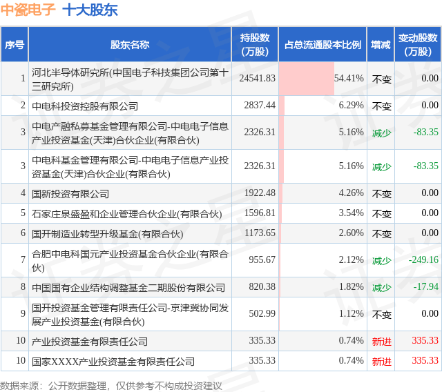 根据中瓷电子2025年三季报公布的十大股东详情如下: