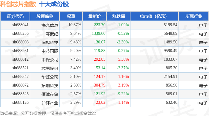 证券之星消息,11月4日,科创芯片(000685)指数报收于2590.72点,跌0.71%,成交628.56亿元,换手率2.04%。当日该指数成份股中,上涨的有9家,中微公司以5.38%的涨幅领涨,下跌的有41家,佰维存储以9.22%的跌幅领跌。