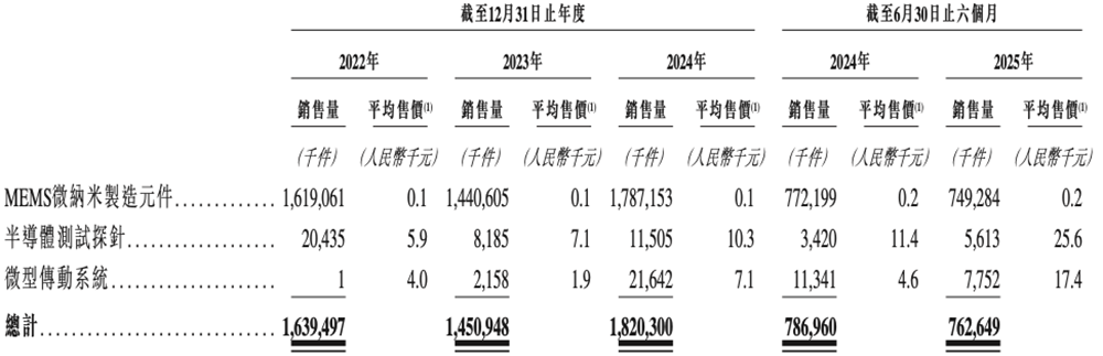 2025年上半年,和林微纳卖出7.49亿件MEMS微纳米制造元件、561万件半导体测试探针、775万件微型传动系统。